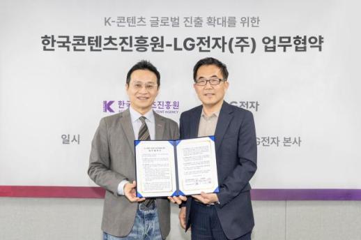 한국콘텐츠진흥원(이하 콘진원)은 지난 30일 서울 영등포구 엘지전자 사옥에서 엘지전자와 ‘K-콘텐츠 글로벌 진출 확대를 위한 업무협약(MOU)’을