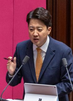 이준석 개혁신당 의원이 지난 15일 국회에서 열린 정치에 관한 대정부 질문에서 김민석 국무총리에게 질의하고 있다.
