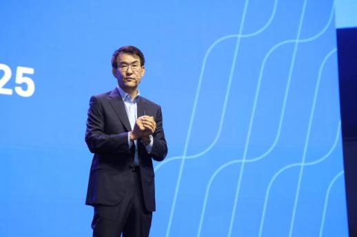 김경진 한국 델 테크놀로지스 총괄사장은 17일 오전 서울 강남구 코엑스에서 열린 '델 테크놀로지스 포럼 2025'에서 발표하고 있다.