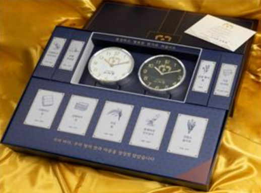 선물은 이 대통령의 서명이 담긴 탁상시계와 8도 수산물 등으로 구성,