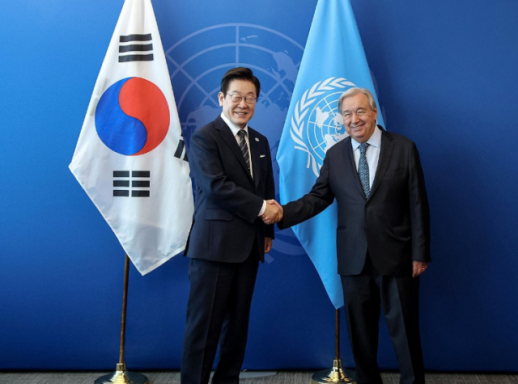 이재명 대통령이 미국 뉴욕에서 열린 유엔총회에서 기조연설을 마친 뒤 안토니우 구테흐스 유엔 사무총장 및 우즈베키스탄, 체코 정상과 회담을 가졌다.