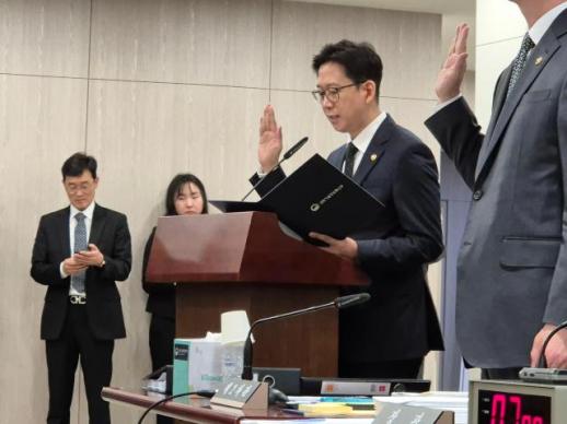 배경훈 부총리 겸 과학기술정보통신부(과기정통부) 장관이 13일 정부세종청사에서 열린 국정감사에서 증인 선서를 하고 있다.