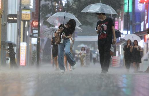 지난달 16일 서울 중구 명동에서 시민들이 우산을 쓰고 이동하고 있다.
