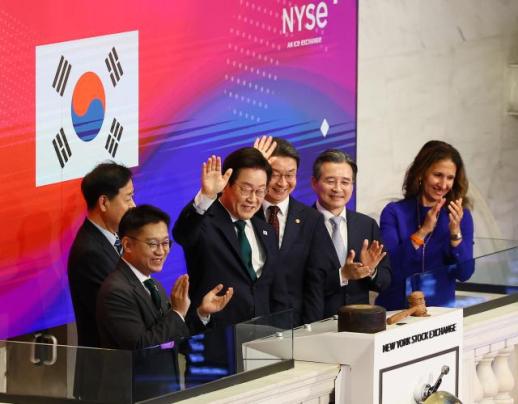 이재명, 뉴욕증권거래소서 '투자 서밋' 진행…국내외 금융인 참석 제80차 유엔 총회 참석을 위해 방미 중인 이재명 대통령이 뉴욕증권거래소(NYSE)에서 투자 설명회를 개최했다. 이 대통령은 25일 오전(현지시간) 뉴욕증권거래소에서 국내외 주요 핵심 금융인들과 함께 '대한민국 투자 서밋'을 열어 우리나라에 대한 투자를 당부하고, 양국 경제·금융 협력에 동참해 달라고 요청했다. 이번 설명회에는 구윤철 경제부총리 겸 기획재정부 장관, 이억원 금융위원회 위원장, 이찬진 금융감독원 원장, 정은보 한국거래소 이사장, 김태현 국민연금공단 이사장, 박일영 한국 2025-09-25 23:20:58