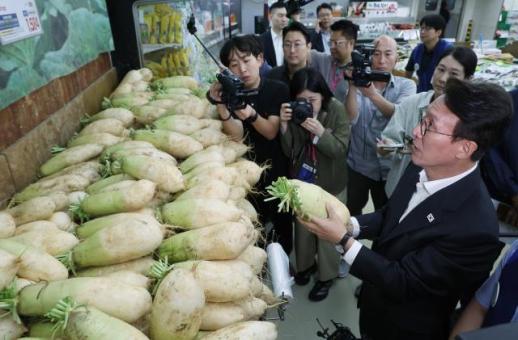 金총리, 추석맞이 물가점검…"농산물 수급·유통구조 개선 노력" 김민석 국무총리는 "대통령께서 농산물 수급 관리, 유통구조 개선에 대해 특별한 관심을 갖고 계셔서, 이를 중장기적으로 잘 개선하는 노력을 하겠다"고 말했다. 김 총리는 22일 오전 서울 서초구 양재동 하나로마트에서 개최한 '추석 맞이 물가 현장점검 회의'에서 이같이 언급했다. 김 총리는 이어 "농축산물 공급과 가격 안정 등에 있어 농협의 역할이 굉장히 크다"며 "이번 추석에서 질 좋은 농산물이 잘 공급될 수 있도록 지혜롭게 대처해주길 바란다"고 당부했다. 김 2025-09-22 14:25:42